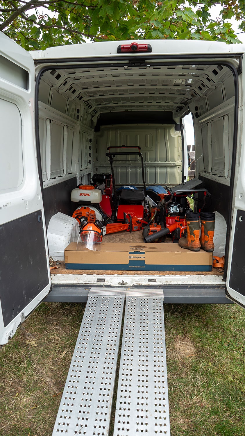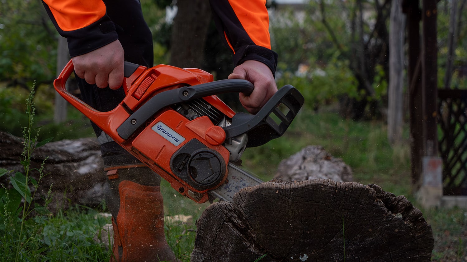Minőségi gépparkkal végezzük feladatunkat, legyen szó gazolásról, vagy egy termetes fa kivágásáról.